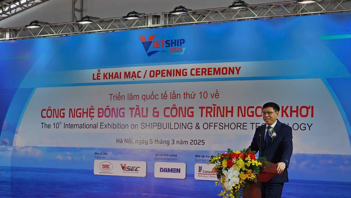 Sáng 5/3, tại Hà Nội, chính thức khai mạc Triển lãm quốc tế lần thứ 10 về công nghệ đóng tàu và công trình ngoài khơi (Vietship 2025) do Tổng Công ty Công nghiệp tàu thủy (SBIC) phối hợp với Công ty cổ phần Kỹ thuật đóng tàu Việt Nam (VISEC) tổ chức. Triển lãm diễn ra từ 5-7/3/2025 tại Trung tâm Hội nghị Quốc gia, Mễ Trì, Từ Liêm, Hà Nội.