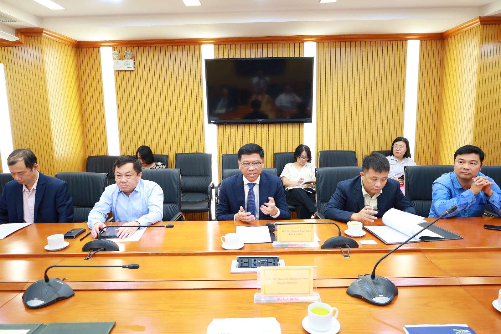 Speaking at the meeting, Deputy Minister Nguyễn Xuân Sang welcomed Deputy Minister Musa bin Ahmed Al-Barqi and the delegation to visit and work with the Ministry of Construction of Vietnam.