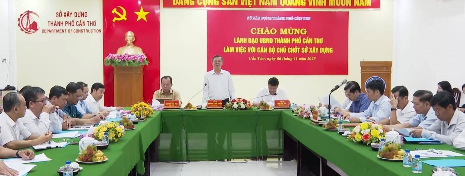 Ngày 6/11, ông Trương Cảnh Tuyên, Phó Bí thư Thành ủy, Chủ tịch UBND thành phố Cần Thơ, cùng ông Nguyễn Văn Hòa, Phó Chủ tịch UBND thành phố, đã có buổi làm việc với cán bộ chủ chốt Sở Xây dựng về tình hình hoạt động của đơn vị, kết quả thực hiện nhiệm vụ 10 tháng đầu năm và phương hướng, kế hoạch những tháng còn lại của năm 2025.
