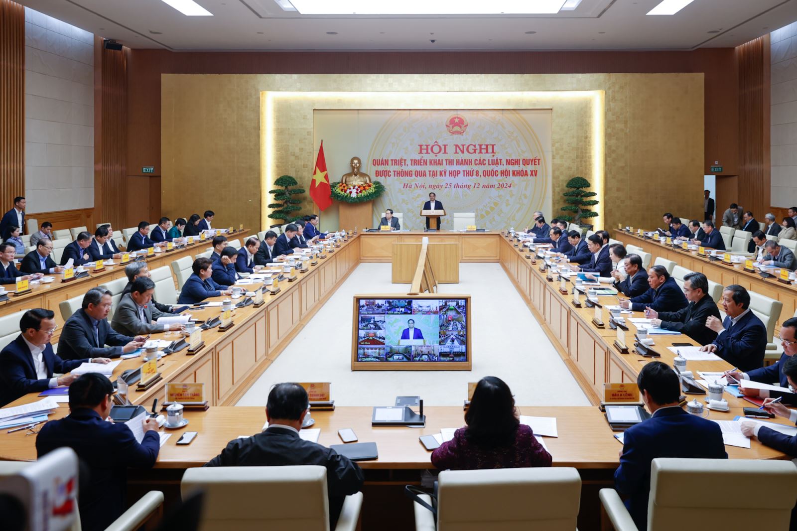 Thủ tướng Phạm Minh Chính phát biểu khai mạc Hội nghị quán triệt, triển khai thi hành các luật, nghị quyết được thông qua tại Kỳ họp thứ 8 Quốc hội khoá XV -Ảnh: VGP/Nhật Bắc