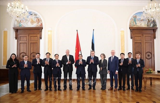 Thứ trưởng Nguyễn Xuân Sang tháp tùng Thủ tướng Chính phủ Phạm Minh Chính hội kiến Chủ tịch Quốc hội Estonia Lauri Hussar (Nguồn: TTXVN)