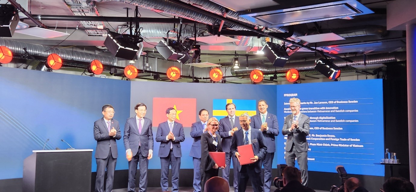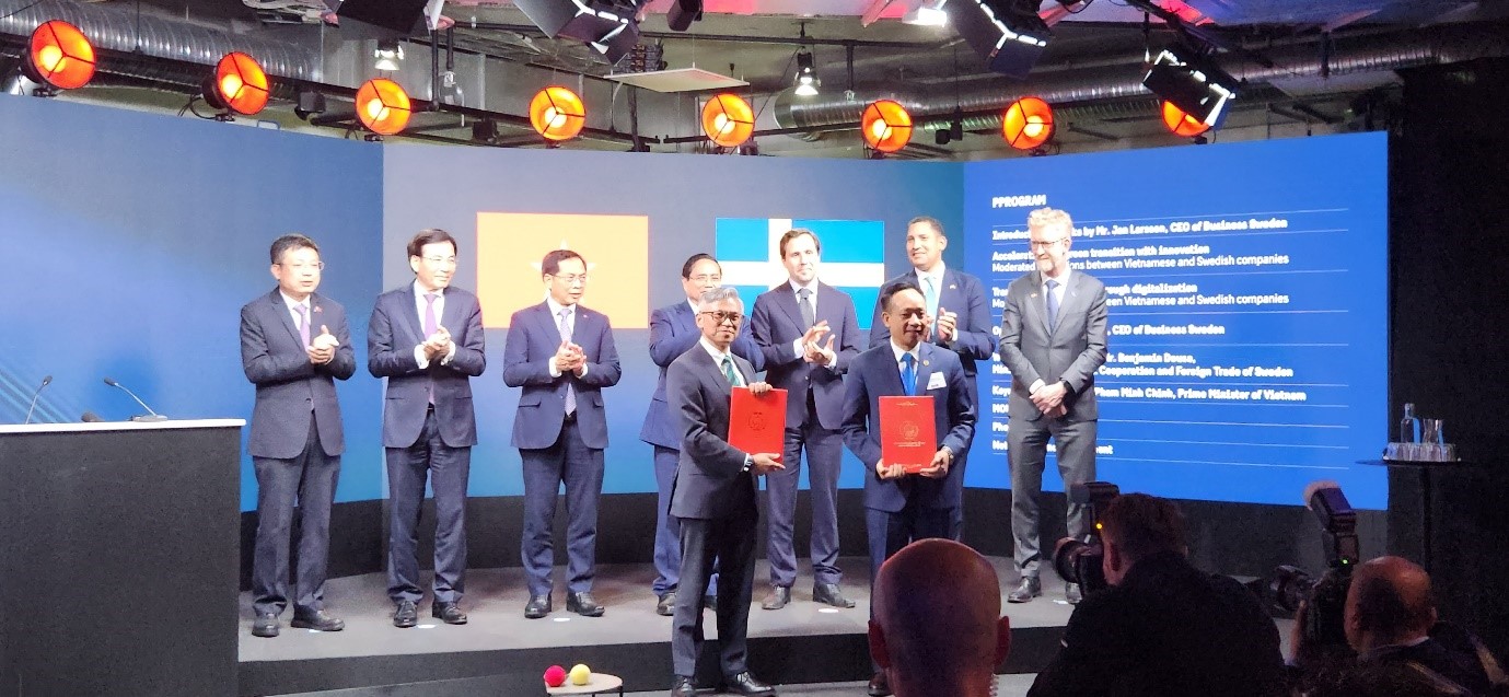 Thủ tướng Chính phủ Phạm Minh Chính chứng kiến trao văn kiện hợp tác giữa Tổng công ty Quản lý bay Việt Nam và Quỹ Phát triển Thụy Điển