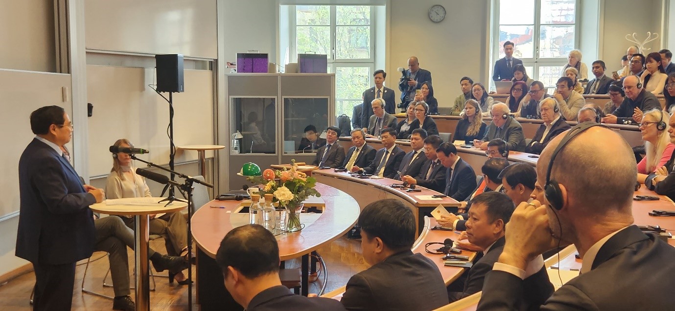 Thứ trưởng Nguyễn Xuân Sang tháp tùng Thủ tướng Chính phủ Phạm Minh Chính thăm Đại học Kinh tế Stockholm
