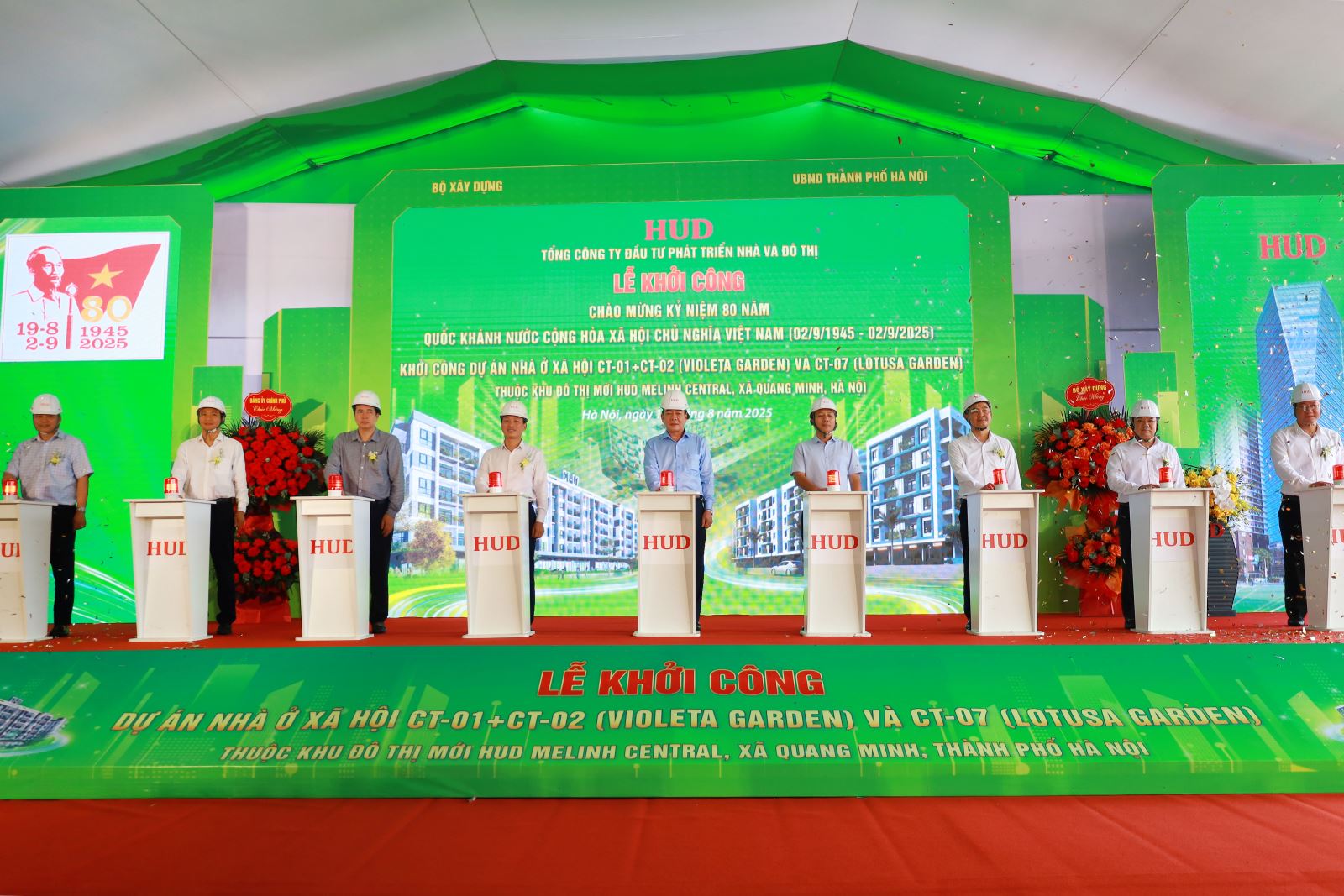 Trong không khí cả nước sôi nổi thi đua chào mừng 80 năm Quốc khánh nước Cộng hòa xã hội chủ nghĩa Việt Nam (2/9/1945 - 2/9/2025), ngày 19/8/2025, tại Hà Nội, Tổng công ty Đầu tư phát triển nhà và đô thị (HUD) tổ chức Lễ khởi công xây dựng các Dự án Nhà ở xã hội CT-01, CT-02 và CT-07 thuộc Khu đô thị mới Thanh Lâm - Đại Thịnh 2 (HUD - MELINH CENTRAL). Dự Lễ khởi công có Phó Bí thư Đảng ủy Chính phủ Nguyễn Đức Phong, đại diện Bộ Xây dựng, lãnh đạo Tổng công ty.