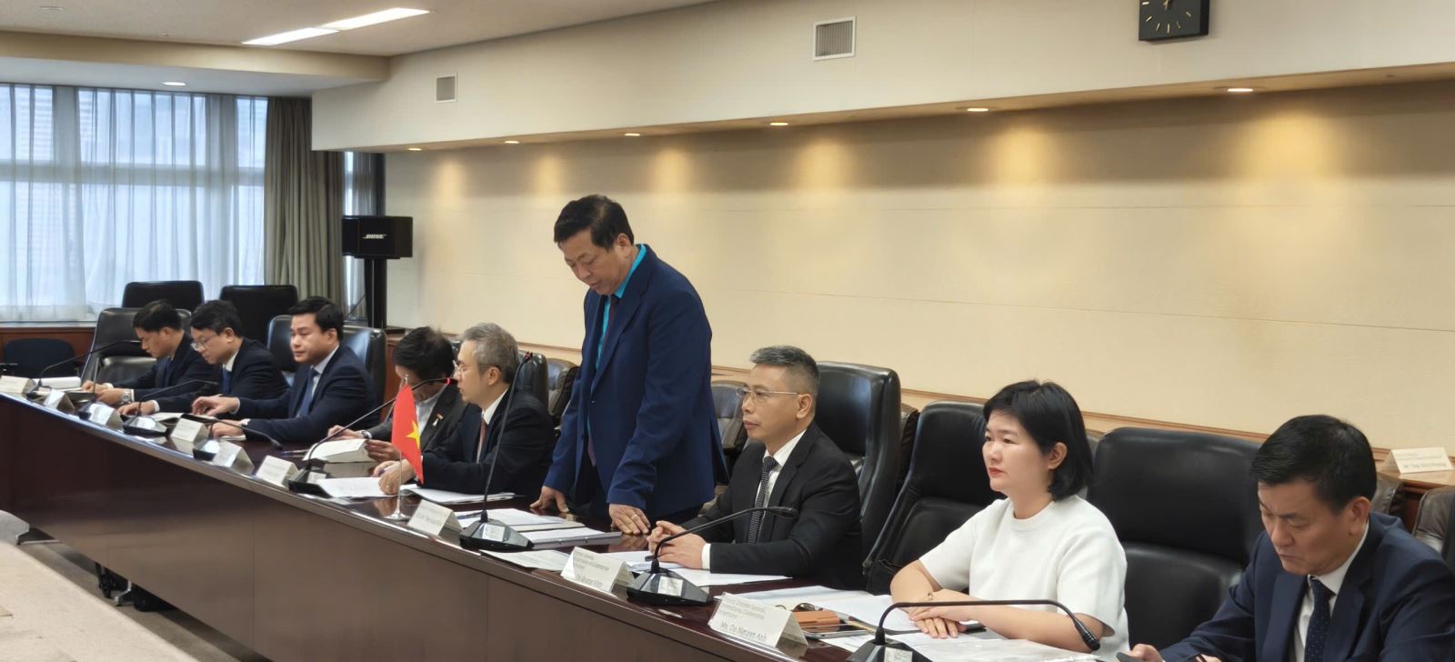 Bộ trưởng Trần Hồng Minh phát biểu tại buổi làm việc với Thứ trưởng Bộ MLIT Ishii Hiroyuki