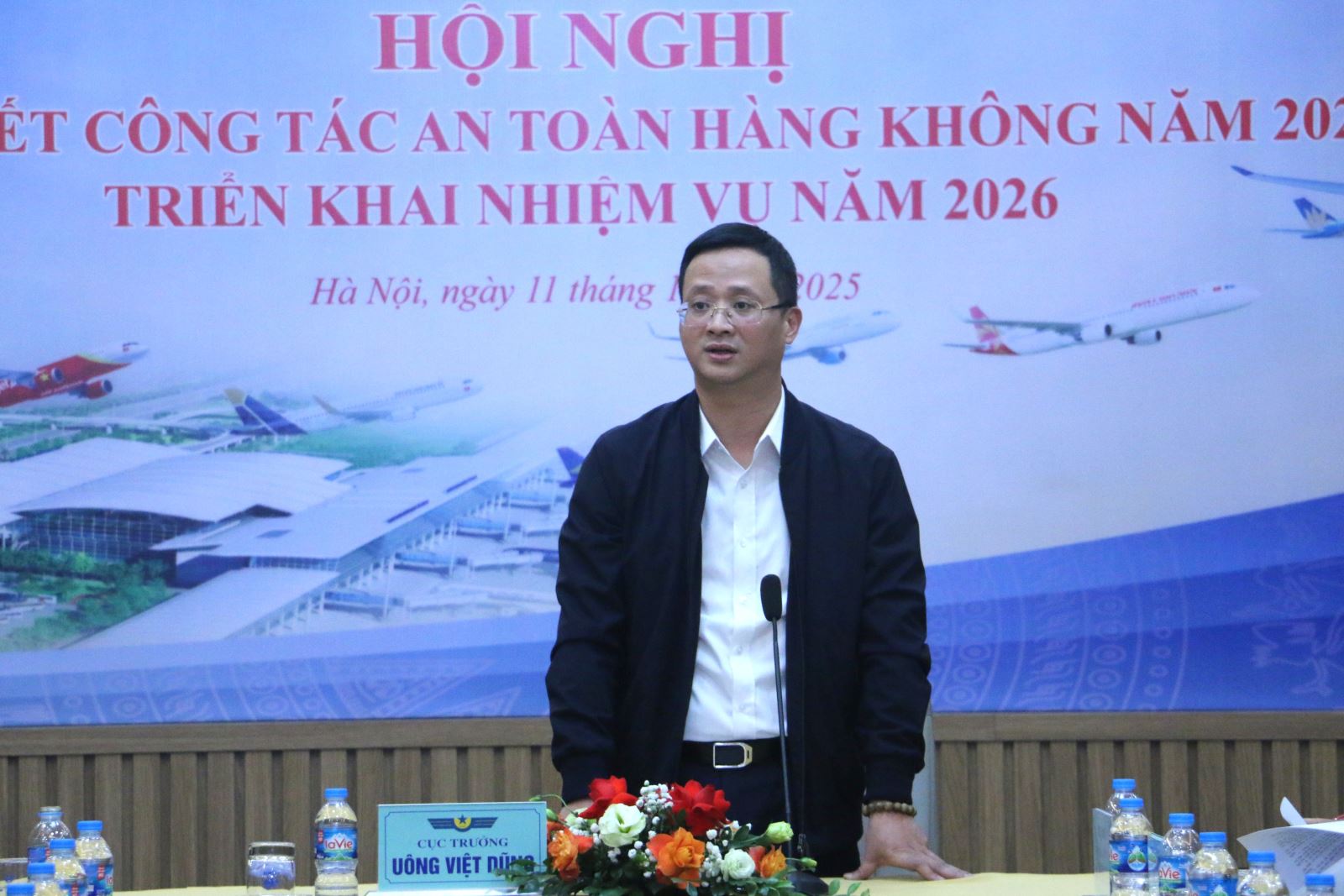 Phát biểu kết luận Hội nghị, Cục trưởng Cục HKVN Uông Việt Dũng nhấn mạnh: Kết quả tích cực trong công tác đảm bảo an toàn hàng không năm 2025 cho thấy các giải pháp nâng cao an toàn đã đạt hiệu quả, đúng hướng, nhưng không được phép chủ quan, vì vậy đề nghị các cơ quan, đơn vị tiếp tục triển khai thường xuyên, liên tục các giải pháp tại báo cáo trung tâm của Hội nghị, tích cực nhận diện, đánh giá rủi ro để đưa ra biện pháp phòng ngừa hiệu quả.