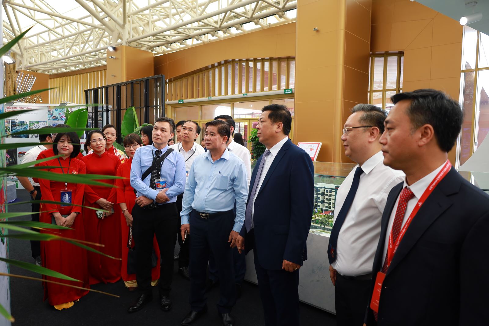 Bộ trưởng Bộ Xây dựng Trần Hồng Minh; Thứ trưởng Nguyễn Việt Hùng và các đại biểu tham quan gian hàng triển lãm của Bộ Xây dựng