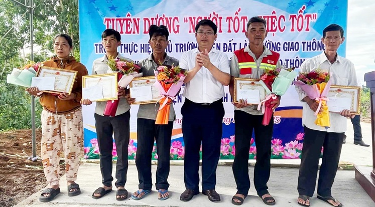 UBND huyện Tuy An (tỉnh Phú Yên) vừa tổ chức biểu dương, khen thưởng đột xuất gương “Người tốt, việc tốt” tự nguyện hiến đất để thực hiện công trình Nâng cấp mở rộng tuyến giao thông liên xã An Lĩnh - An Hiệp, đoạn thôn Phong Lãnh (xã An Lĩnh) nối thôn Phú Xuân (xã An Hiệp, huyện Tuy An).