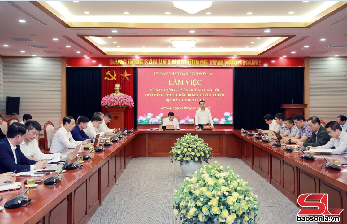 UBND tỉnh Sơn La vừa tổ chức cuộc họp về công tác giải phóng mặt bằng, tiến độ triển khai thực hiện dự án và giải ngân vốn của dự án đầu tư xây dựng tuyến đường bộ cao tốc Hòa Bình - Mộc Châu, đoạn tuyến thuộc địa bàn tỉnh Sơn La.
